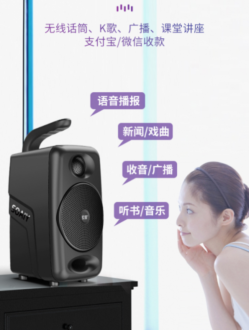 此外,索爱SH36蓝牙音箱也能够all in各种场合。25W的超大功率,带来广场级的音量,轻松覆盖一千平,完美hold住FM收音、户外演讲、促销、收款播报、广场舞等各类使用场景。蓝牙5.0智能芯片还能够与移动设备连接,实现免提通话。索爱SH36蓝牙音箱让生活更便利、让放松如此简单。