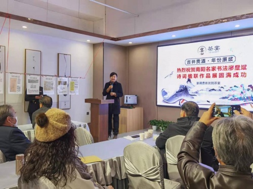 摘要:人民视点河南讯(陈明武) 初冬时节,中国楹联学会会员、南阳市卧龙区楹联学会会长廖显斌诗词楹联名家书法作品展在南阳茶宴餐厅绚丽开幕。 南阳市楹联学会会长赵建海致辞。