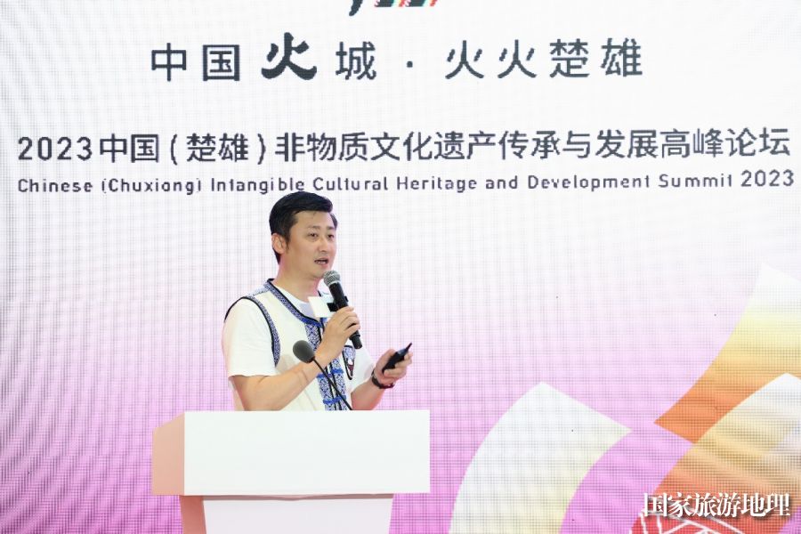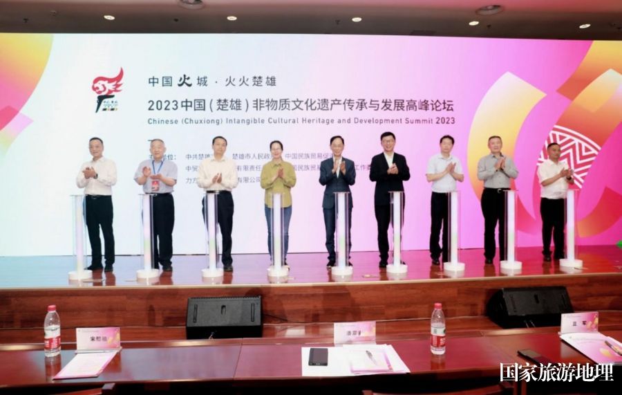 以“创造性弘扬与传承·创新性转化与发展“为主题的2023中国(楚雄)非物质文化遗产传承与发展高峰论坛8月11日在云南省楚雄市举办。来自非物质文化遗产领域的专家学者、传承人、企业家及相关部委、中国民族贸易促进会领导等百余嘉宾齐聚一堂。本次论坛设有主旨演讲、项目宣介等环节,启动了中国(楚雄)非物质文化遗产传承与发展工程专项合作,收获了一系列成果。
