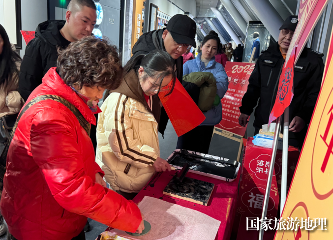春节期间,度假区内的成都大运会博物馆推出了“金蛇献瑞、大运盈门”系列惠民活动,吸引大批游客前来参与。博物馆内布置了金蛇艺术装置,人们纷纷亲手绘制蛇鳞,送上新年的祝福。在“福树互动兑奖”活动里,大家通过集赞等方式兑换新年礼品,感受浓厚的年味。在“灵蛇送福”主题活动区,游客们体验到了传统工艺,亲手拓印蛇年福章,感受岁月的祝福与传承。意犹未尽的游客们纷纷表示,这样的活动既富有创意,又充满温暖与祝福,极大地丰富了春节的文化内涵。
