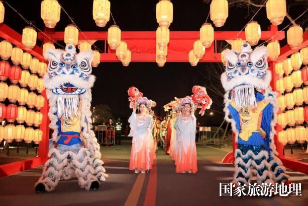 尤为引人注目的是华丽的汉服主题巡游,游客仿佛穿越千年,重返汉唐盛世,体验了中华文化的独特韵味。现场年味十足,民俗表演、舞龙舞狮等精彩节目频频上演,游客们热情参与互动,发出由衷赞叹。