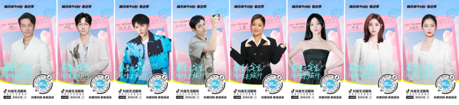 此外,抖音生活服务在本次活动中用透平台资源位,将明星流量的吸引力发挥到最大化——金晨的春日大片铺满抖音开屏、搜索、频道等核心流量入口,从用户刷视频到搜攻略全场景刷足存在感!定制主题海报更是霸占10个城市地标大屏,路人随手扫码就能跳转活动页面。从街头大屏到手机屏幕,从围观到下单,一气呵成!